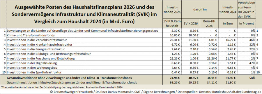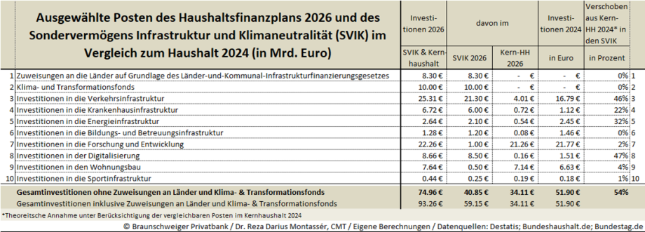 Tabelle 4) Ausgewählte Posten des Haushaltsfinanzplans 2026 und des Sondervermögens Infrastruktur und Klimaneutralität