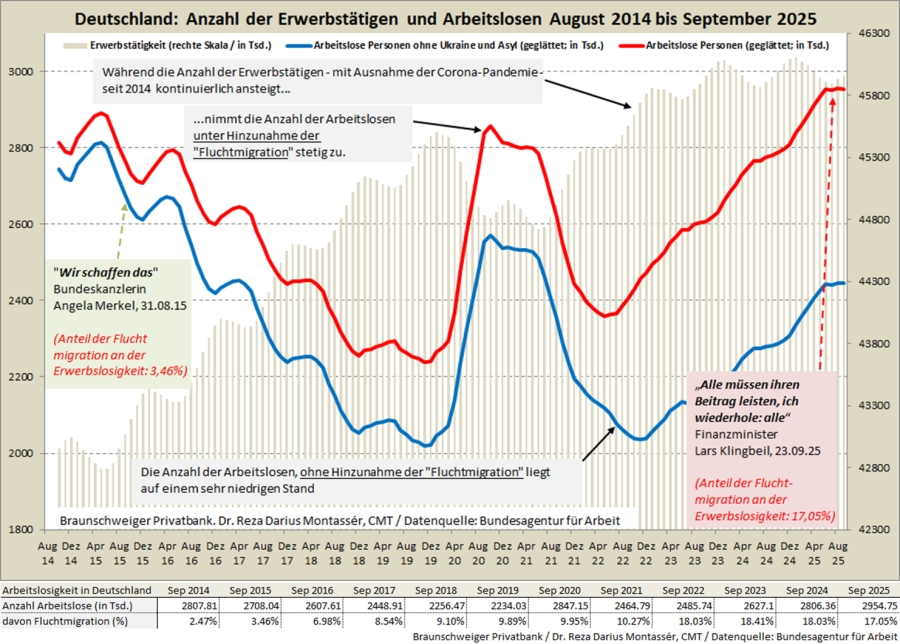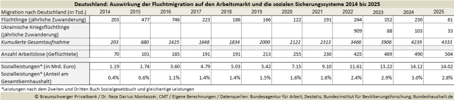Tabelle 1) Auswirkung der Fluchtmigration auf den Arbeitsmarkt und die sozialen Sicherungssysteme 2014 bis