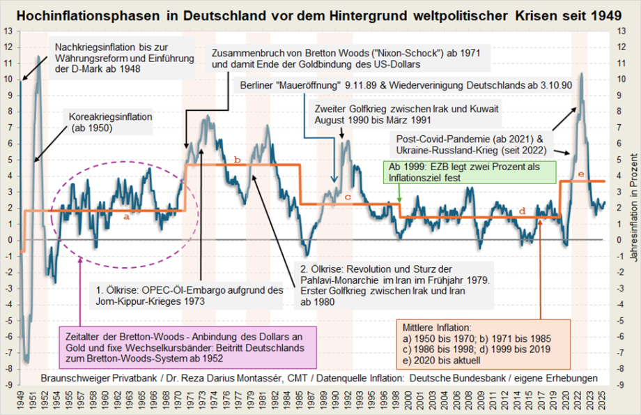 Abb. 2) Hochinflationsphasen in Deutschland vor dem Hintergrund weltpolitischer Krisen seit 1949