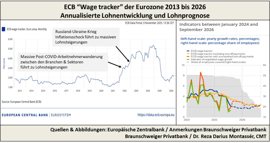 Abb. 11) ECB „Wage tracker” der Eurozone 2013 bis 2026 und annualisierte Lohnentwicklung und