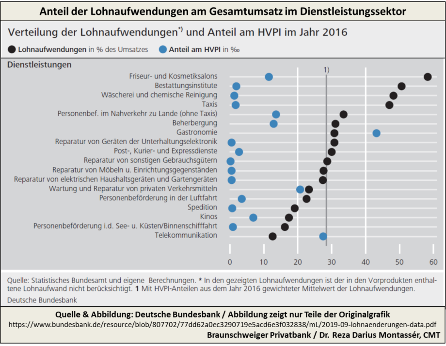 Abb. 12) Anteil der Lohnaufwendungen am Gesamtumsatz im Dienstleistungssektor