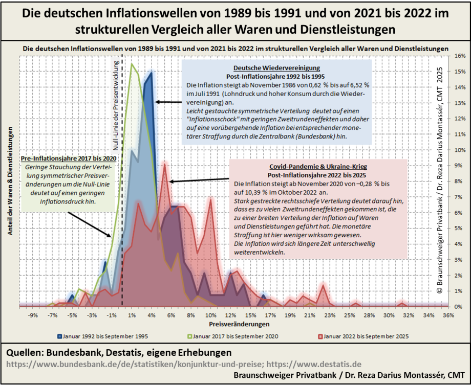 Abb. 14) Die deutschen Inflationswellen von 1989 bis 1991 und von 2021 bis 2022 im strukturellen Vergleich aller Waren und Dienstleistungen (relative