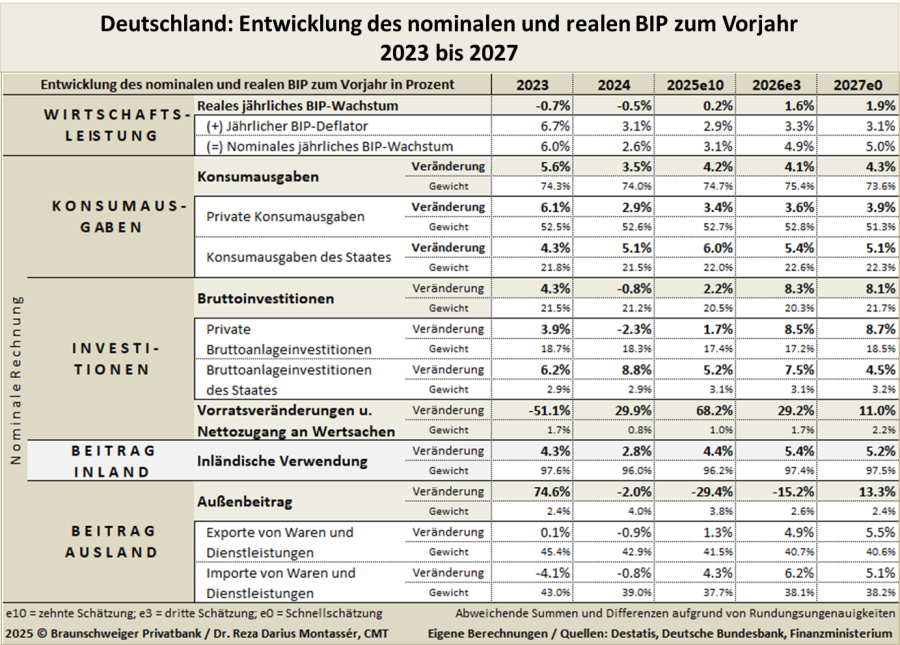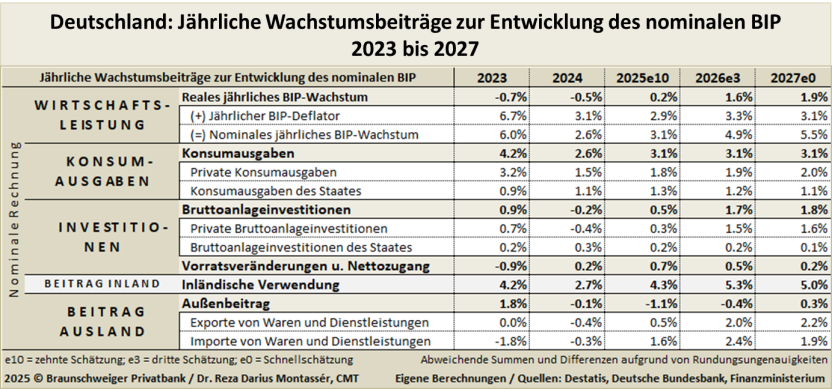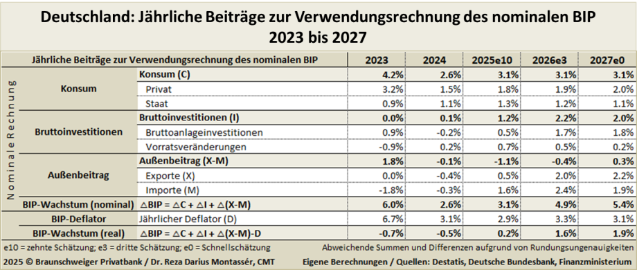 Tab. 3) Deutschland: Jährliche Wachstumsbeiträge zur Entwicklung des nominalen BIP von 2023 bis 2027