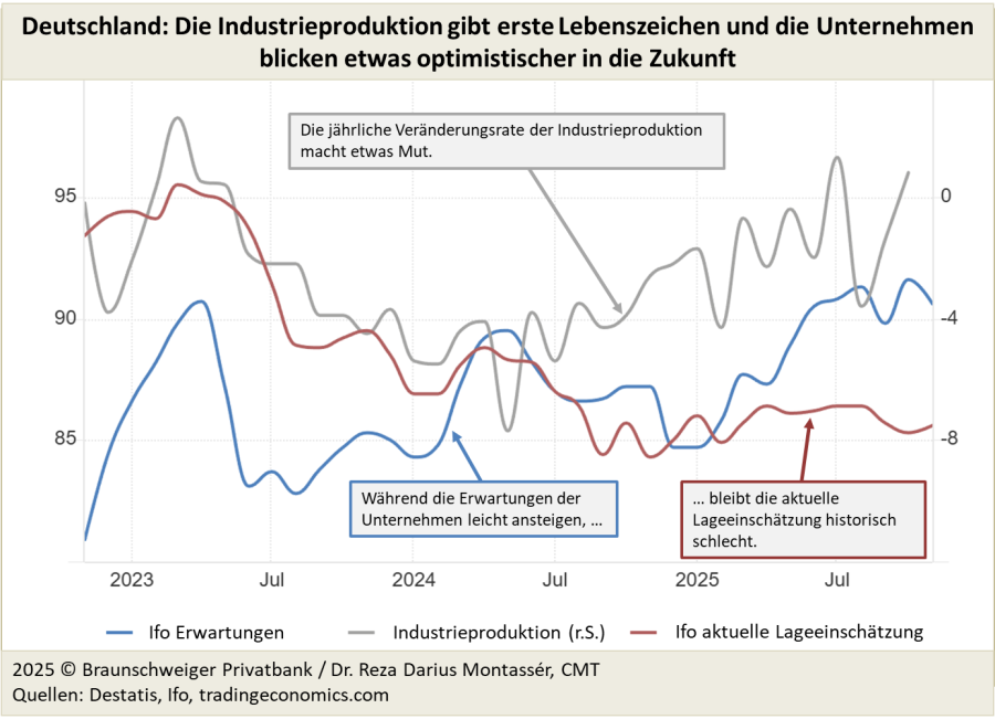 Abb. 1) Ifo-Indizes und Industrieproduktion seit Mitte 2022