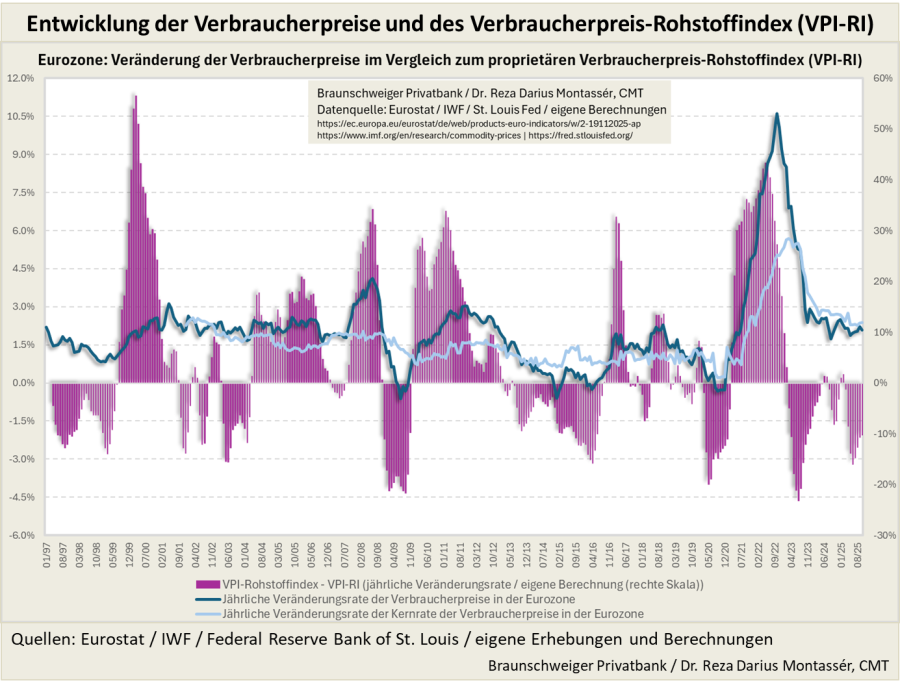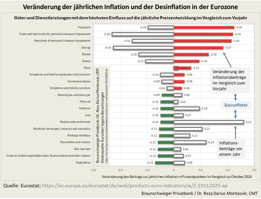 Abb. 3) Veränderung der jährlichen Inflation und der Desinflation in der Eurozone im Oktober 2025