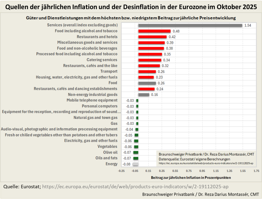 Abb. 2) Quellen der jährlichen Inflation und der Desinflation in der Eurozone im Oktober 2025